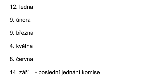 Termíny jednání komise v roce 2026 Předseda komise návrhy tyto termíny jednání komise v roce 2026, vždy v pondělí od 17:30 v klubovně hasičské zbrojnice Vrahovice: